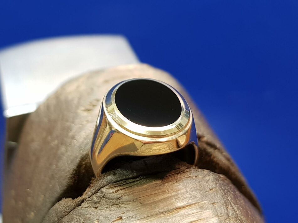 Een hoge pinkring, met extra zetrand. Lapidérand rondom